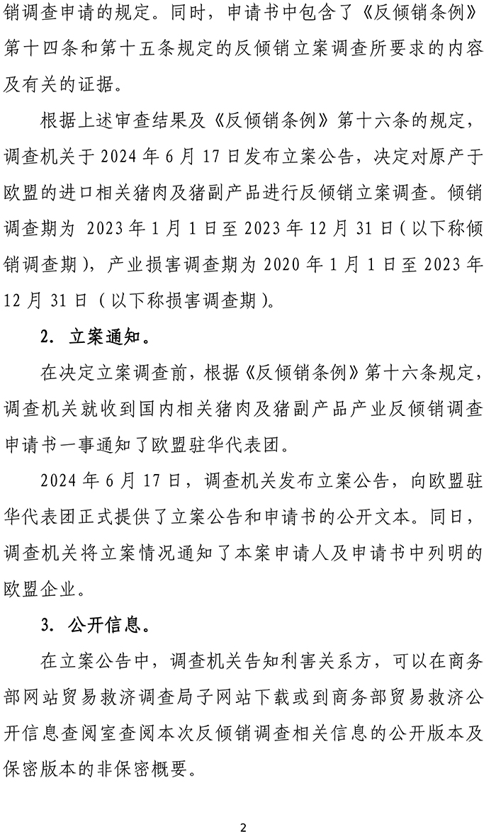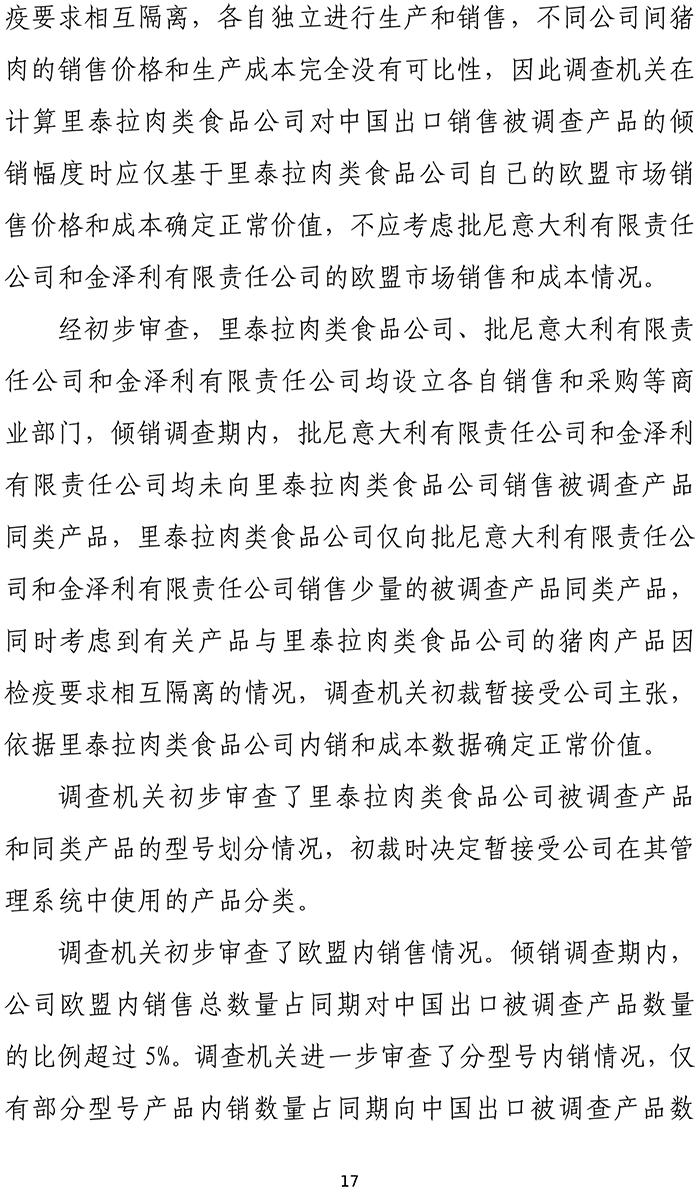 ?中華人民共和國商務部關于原產(chǎn)于歐盟的進口相關豬 肉及豬副產(chǎn)品反傾銷調(diào)查的初步裁定II